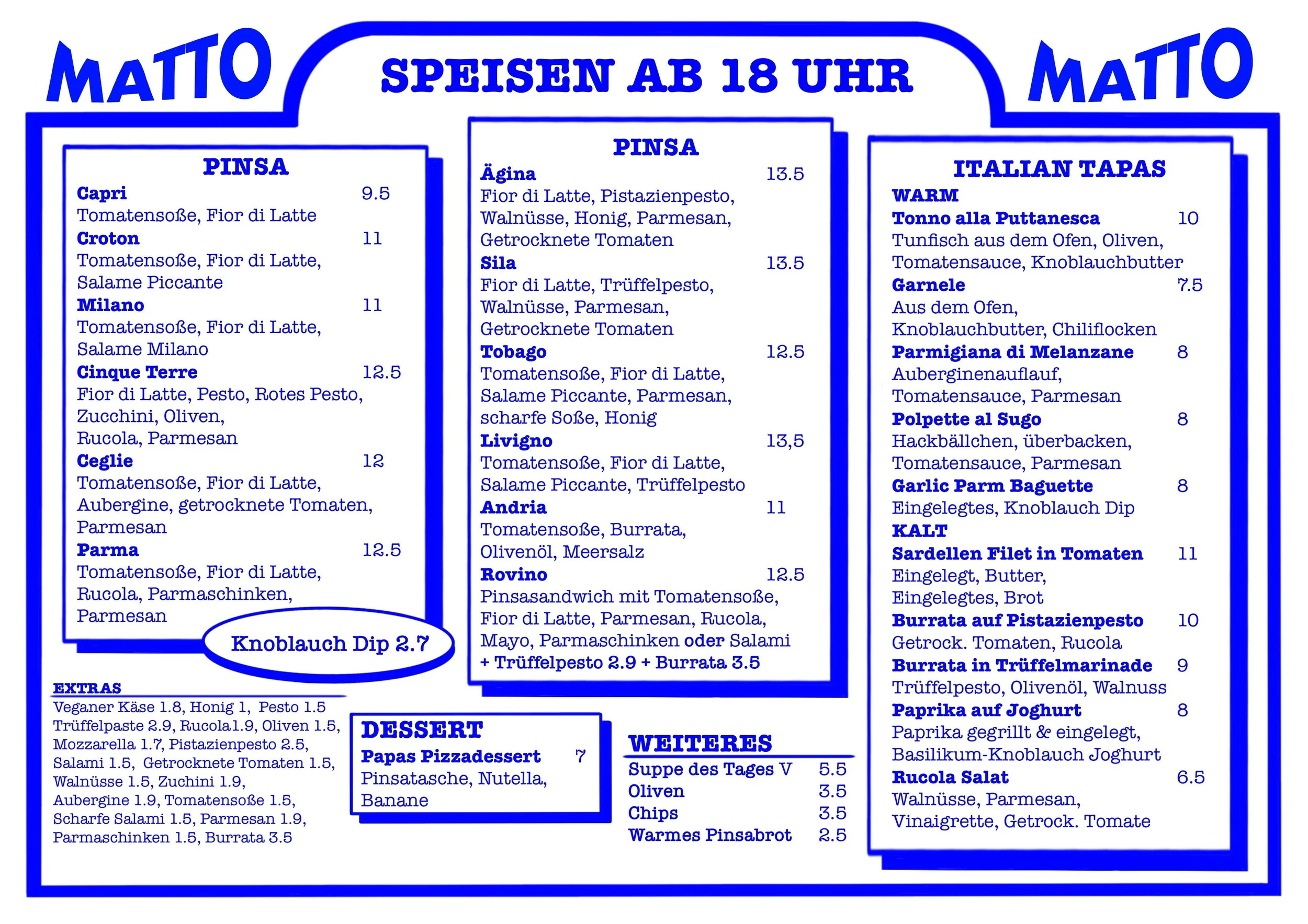 Gönn dir ein Sandwich & einen Drink oder einen Cappuccino & ein Stück Kuchen und vergiss mal Kurz den Alltag. Abends verwöhnen wir dich mit Cocktails, Pinsa und italienischen Tapas.